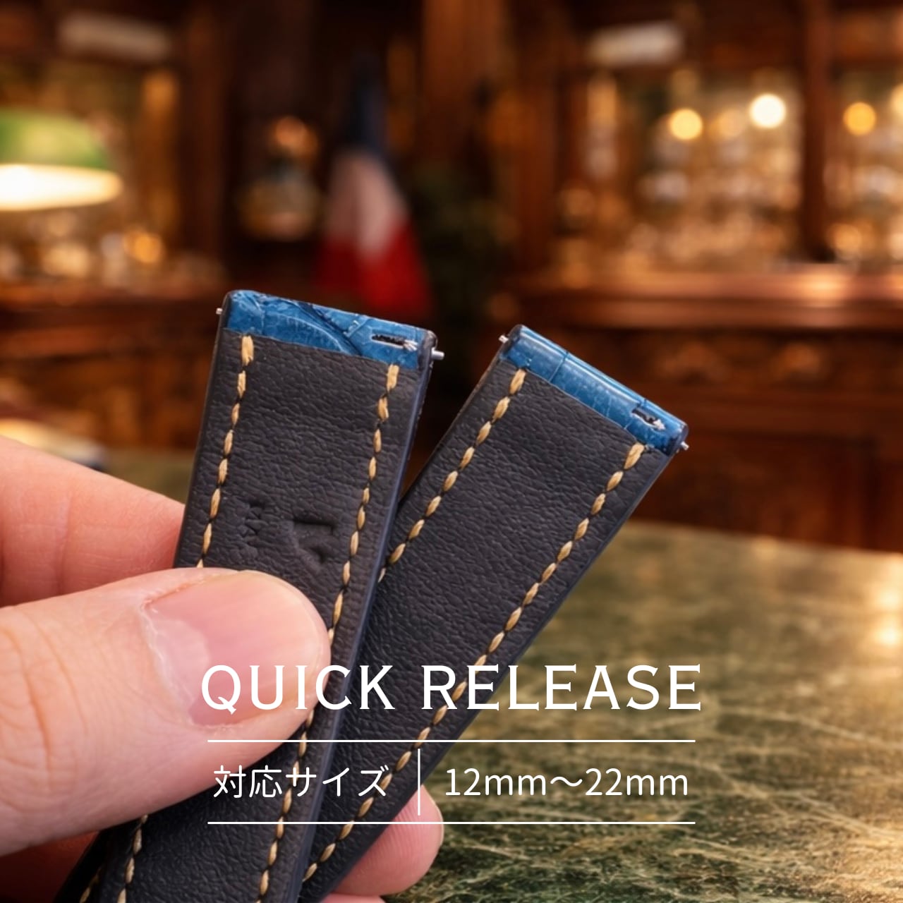 オメガやロレックス、セイコー、シチズンを初めとするビンテージウォッチにお勧めです。 ☆★☆★☆★☆★☆★☆★☆★☆★☆★☆★☆★☆★☆★☆★ 様々な高級機械式時計ブランドで使用される高級感あふれるクロコダイルの時計ストラップ(時計ベルト)です。 クロコダイルのワイルドなウロコ模様が上質な存在感を引き立てます。 カラーはネイビーのマット。 通常のマット仕上げとは違い、使い込むうちに味わい深く経年変化を楽しめるヌメ革の様な特殊な加工が施されています。 ベルトの作り込みは、全て本革を使用しています。 アリゲーター素材、芯材、裏素材のそれぞれの厚み&しなやかさの調整をコントロールしながら、一本一本制作しています。 素材も部位によって厚みやしなやかさが違うので、パーツ一つ一つの状態を確認しながら仕上がり具合にブレが出ないように慎重にコントロールしています。 我々、職人にとって素材を形(モノ)にすることは難しい事ではありません。 そしてアリゲーターやクロコダイルなどの爬虫類はカッコよく、そしてコードバンなど全ての素材に対して美しく制作する事は当たり前のこと。 時計ベルトであれば〜 ・使いやすさはどうだろうか? ・装着感はどうだろうか? ・手首の当たり具合は痛くないのか? その他にも、切り口のコバ面の仕上げやステッチの精度はどうか?などがあります。 こういった事に気遣いながら制作することで「腕に優しくフィットする高いホールド力、長時間の装着でも疲労感が出にくい構造」になっており、使い込むうちに自身の腕周りの形に整っていき、よりフィットするご自身にとって唯一無二の時計ベルトに変わります。 一見、他社の製品と比べて目立って違いがわからない事もあると思いますが、ご使用頂いて実感していただける部分が多々ある事が無二製品の特徴の一つです。 これまで色々と時計ベルトを試してきたけれど、満足感が得られなかった方にも是非、一度試して頂きたいと思います。 ☆★☆★☆★☆★☆★☆★☆★☆★☆★☆★☆★☆★☆★☆★ 革職人目線で仕立てることによりフィット感と耐久性を実現した腕時計用のベルトです。 ☆★☆★☆★☆★☆★☆★☆★☆★☆★☆★☆★☆★☆★☆★ <POINT> ・機械式時計用のベルト制作技術を採用し、胴元幅18mmから美錠幅16mmにかけて滑らかなテーパーをかけたシルエットを採用。 ・使用中にダメージが出やすい切り身仕立てのコバ面は、高級メゾンでも使用しているヨーロッパ製の水性コバ塗料を塗り込みながら、一枚革仕立てかのように滑らかな面になるまで磨き仕上げしています。 ・ベルト内部には本革で形成した芯材を内蔵し、程よい立体感を出しています。 <ブランド> 無二 / MUNI <仕様> 表素材:シャムクロコダイル ネイビー竹腑・マット仕上げ ※天然素材の為、部位により色、柄が変わります。ご了承くださいませ。 裏素材:牛革(イタリーレザー)・ダークブラウン ※キズや水滴防止のため、表面に特殊加工を施した革を使用しています。 ベルトの長さ:12時側:68mm、6時側:120mm ※バックル含まず ベルトの形状:ベルト胴元幅18mmから美錠幅16mmに絞ったテーパード&ボンベ形状です。 ベルトの厚み:時計本体側4.3mmから美錠側3.5mm ※ベルトの厚みは、時計本体側から美錠側に掛けての厚みの事です。滑らかに厚みの変化をつけています。 ステッチ:ライトベージュ(手縫い) バックル:ステンレスプッシュ式Dバックル・バンビ社製 / シルバー バネ棒:クイックリリース装備(ワンタッチバネ棒) <備考> ・つく棒タイプの尾錠がご希望の場合はお知らせください。 ・ベルトエンドを通す固定のループは太めの遊革のみの設定です。 ・コバ面は、ヨーロッパ製の水性コバ塗料を塗り込みながら磨き仕上げしております。 ・天然素材のため、色柄に多少の差があることをご了承ください。