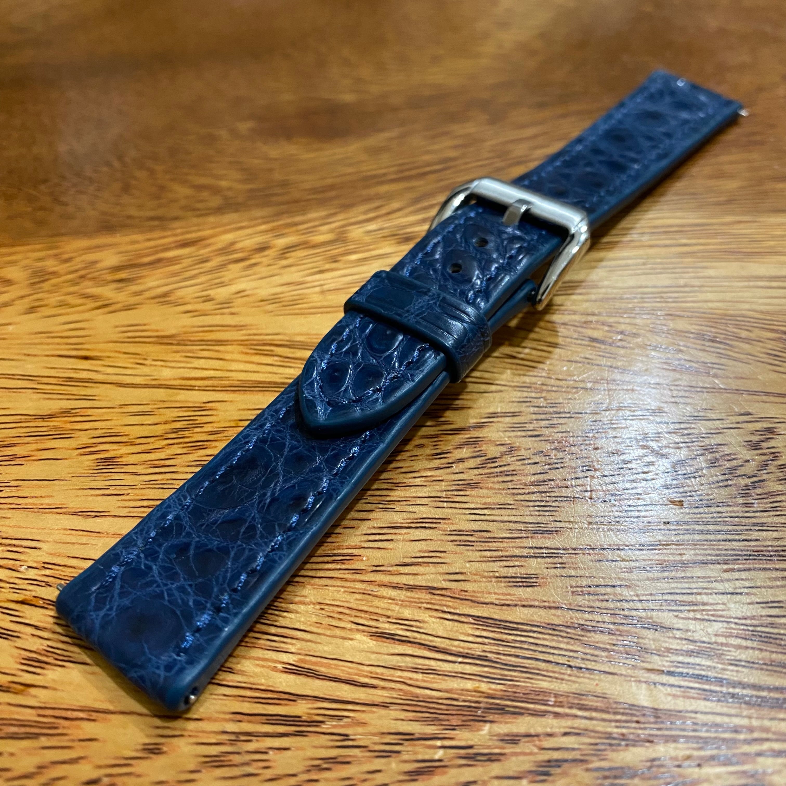 時計ベルト シャムクロコダイル ネイビー(マット)丸腑 20mm-18mm 【スタンダード】フルフラット型 腕時計バンド