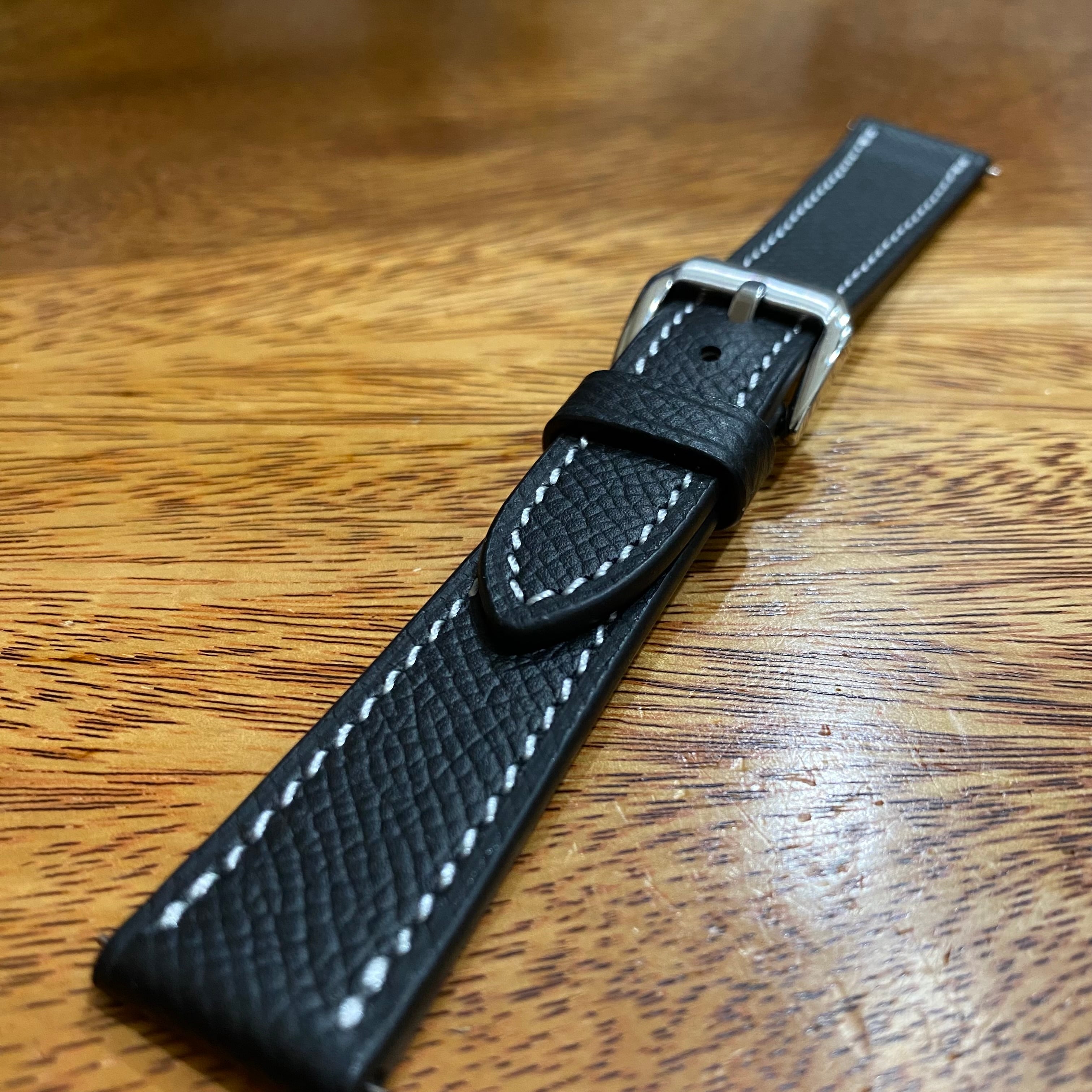 ヨーロッパの高級メゾンブランドでも使用されているヴォー・エプソンを使用した時計ストラップ(時計ベルト)です。
