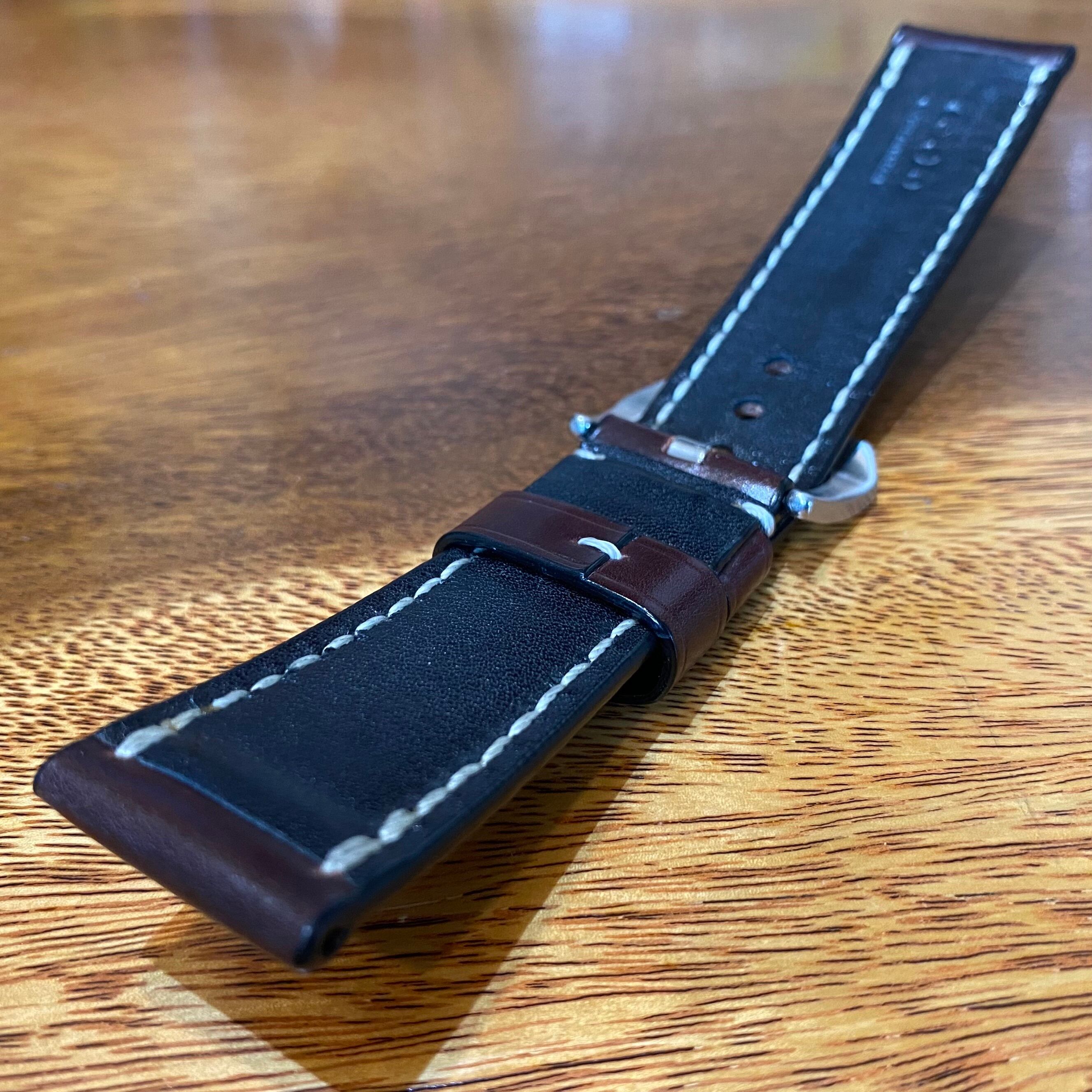 新喜皮革製のオイル染めコードバンを使用した腕時計ストラップ(時計ベルト)です。