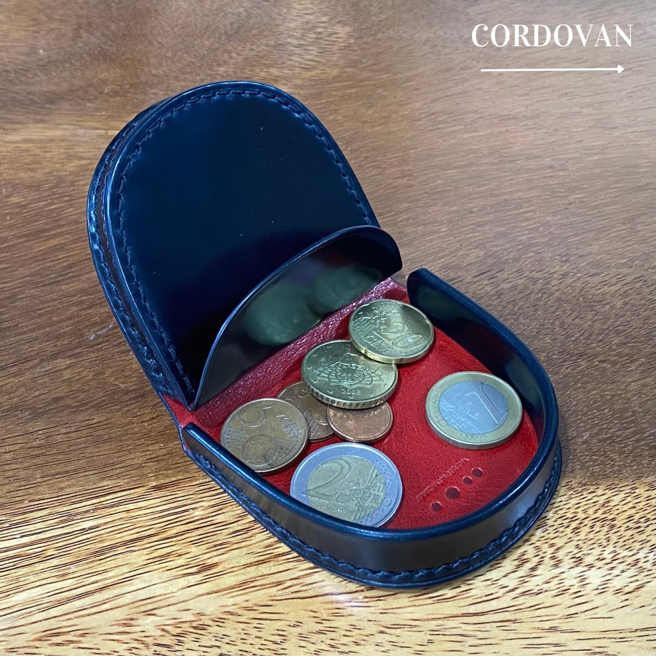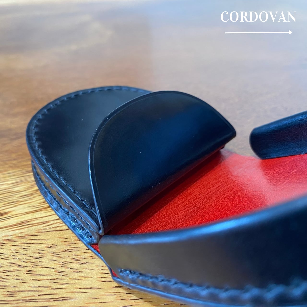 無二 馬蹄型小銭入れ オイルコードバン・ブラック×イタリーショルダーレザー・レッド 総手縫い仕立て Horse shoe coinpurse