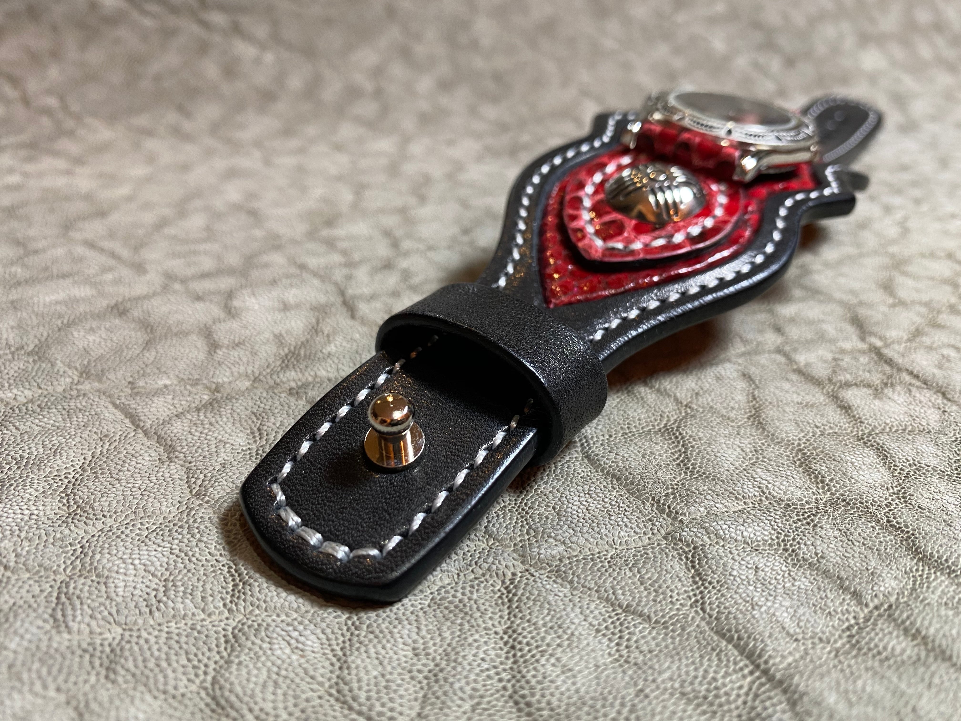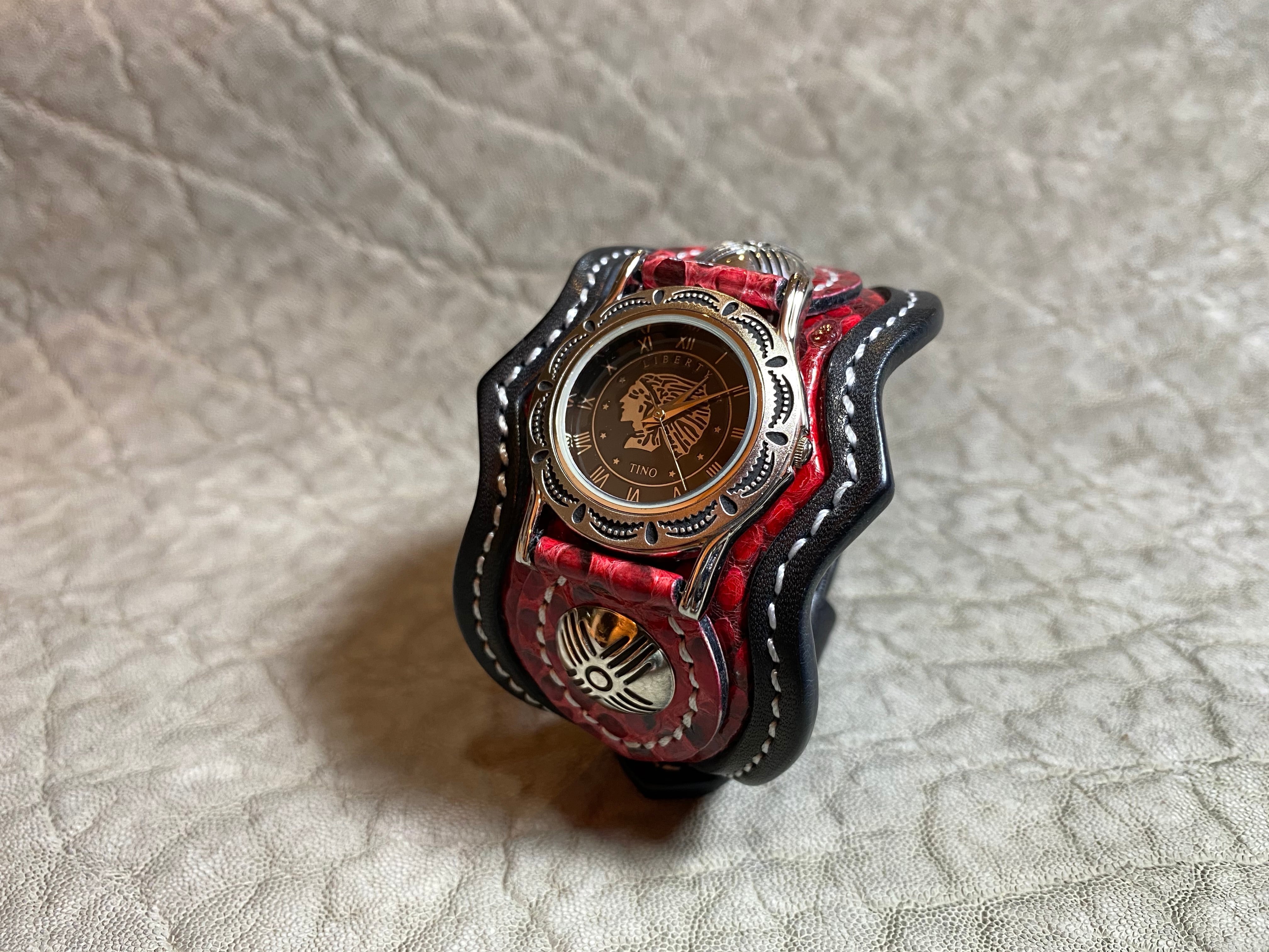 Cactusカクタス レザーウォッチType1 レッドパイソン×ブラック(メンズサイズ)