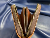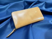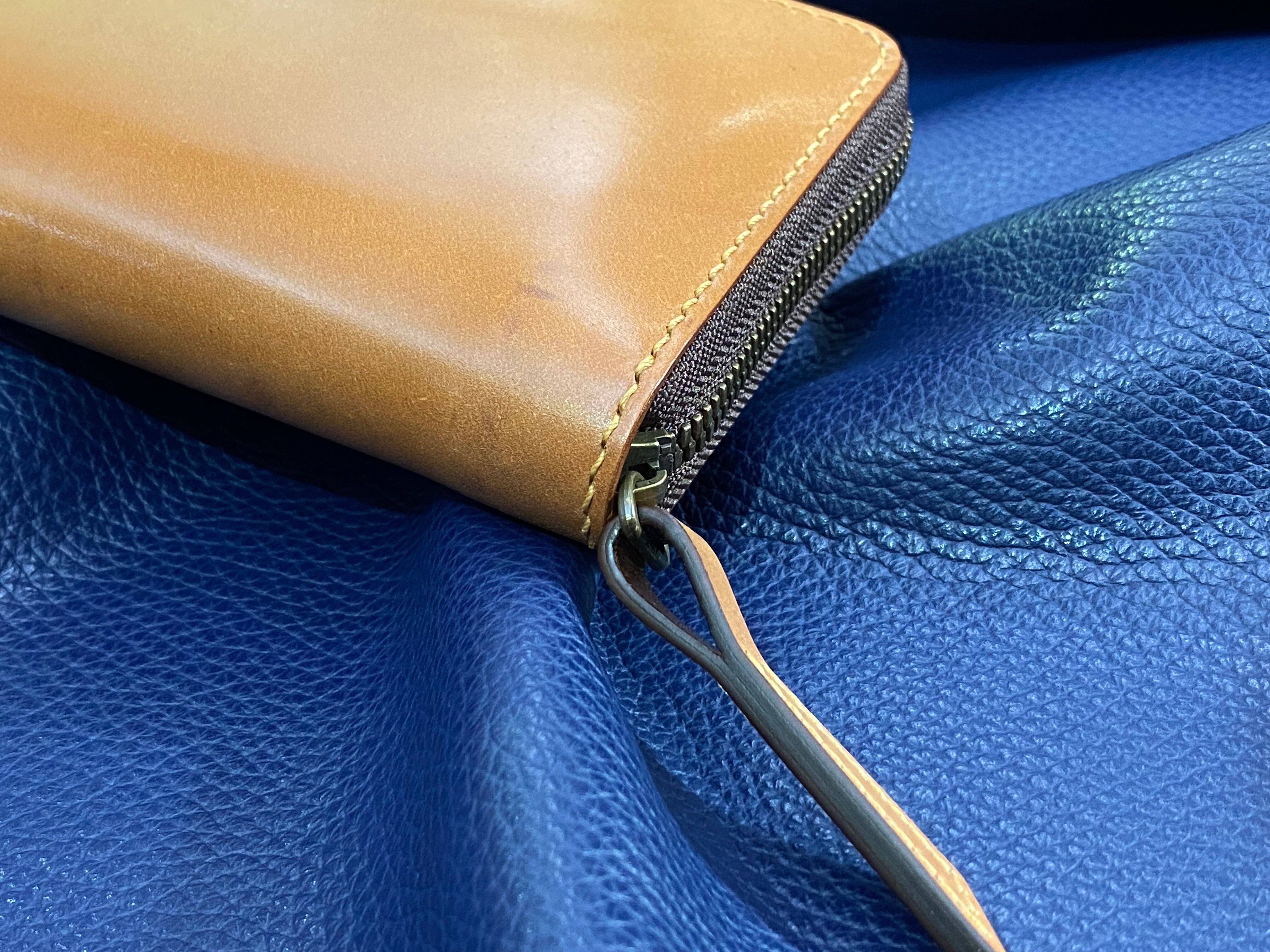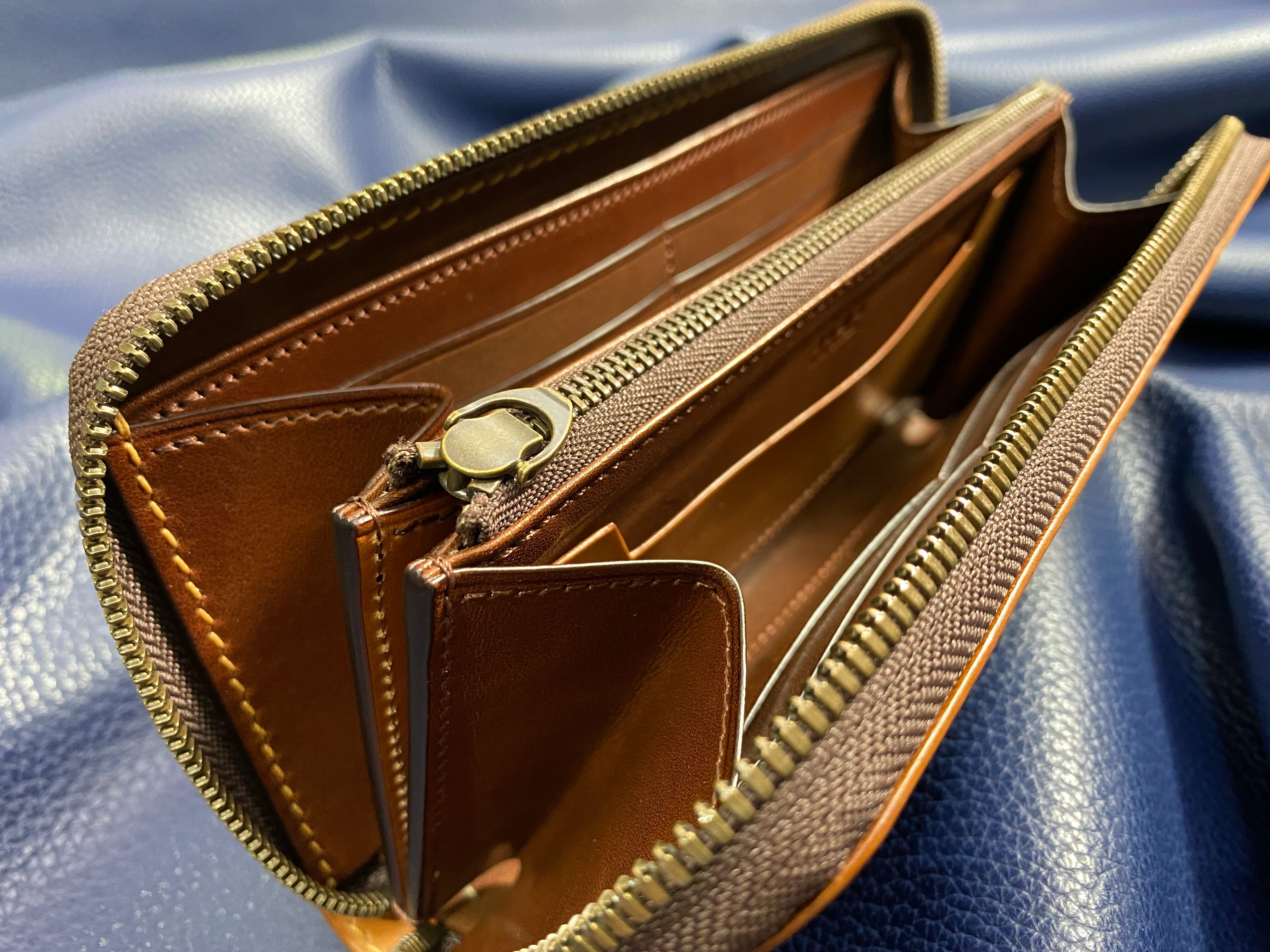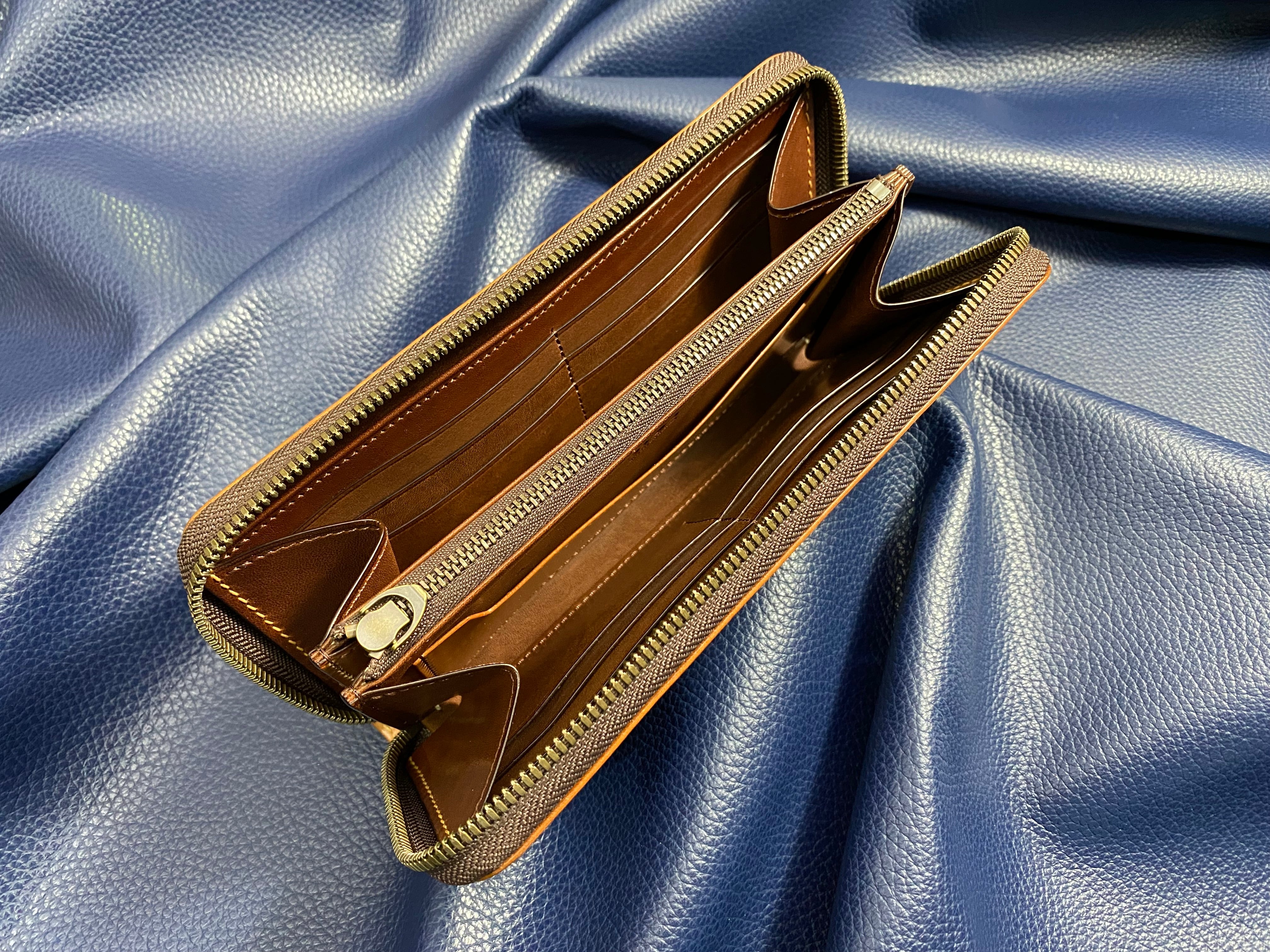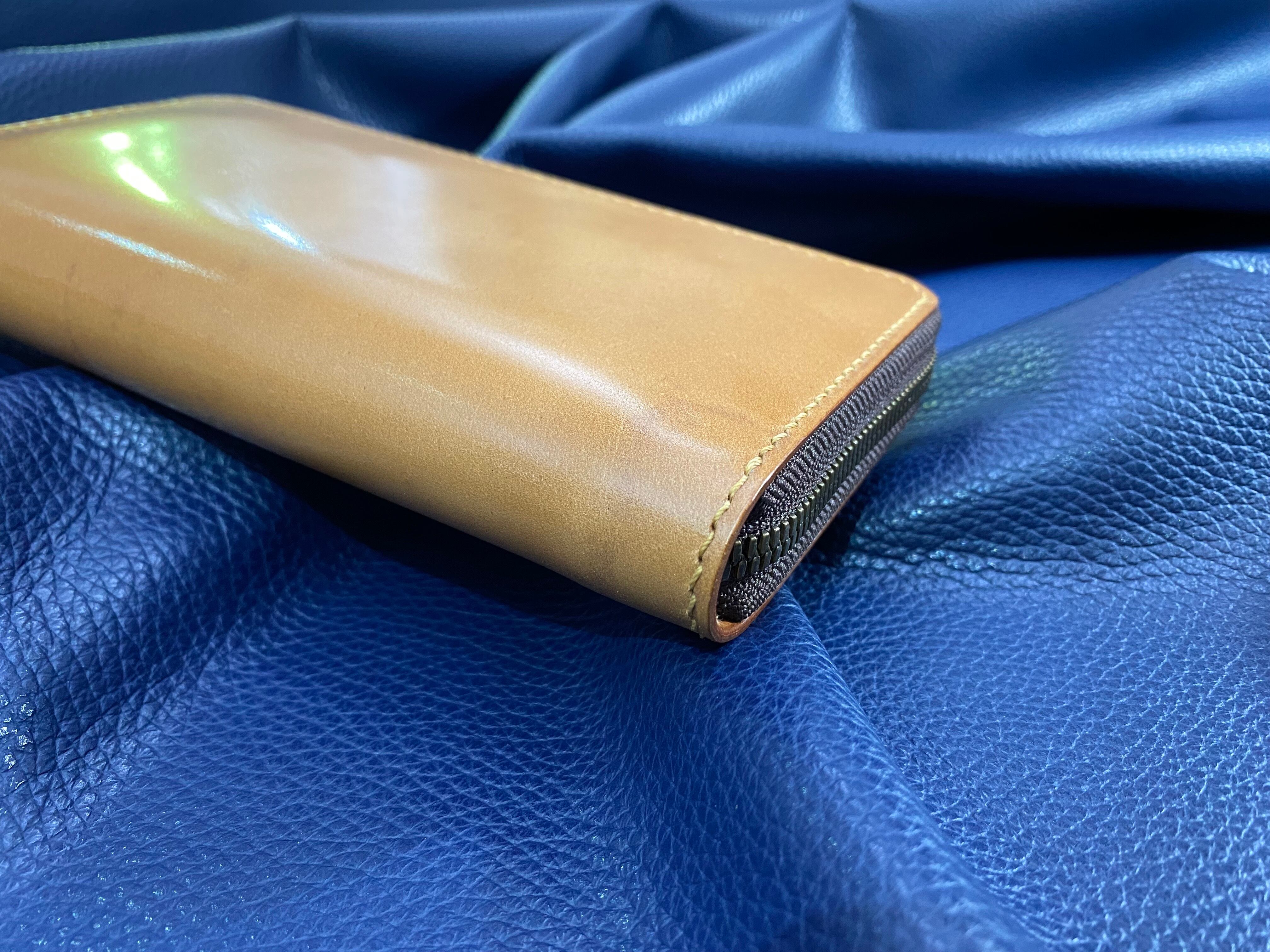 カスタムタイプ 無二 コードバンの長財布 ラウンドファスナー オイルコードバン・ナチュラル×ブラウン