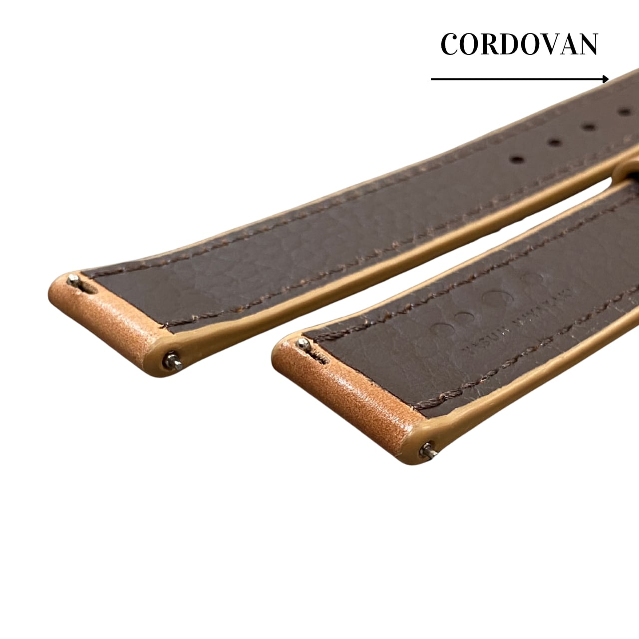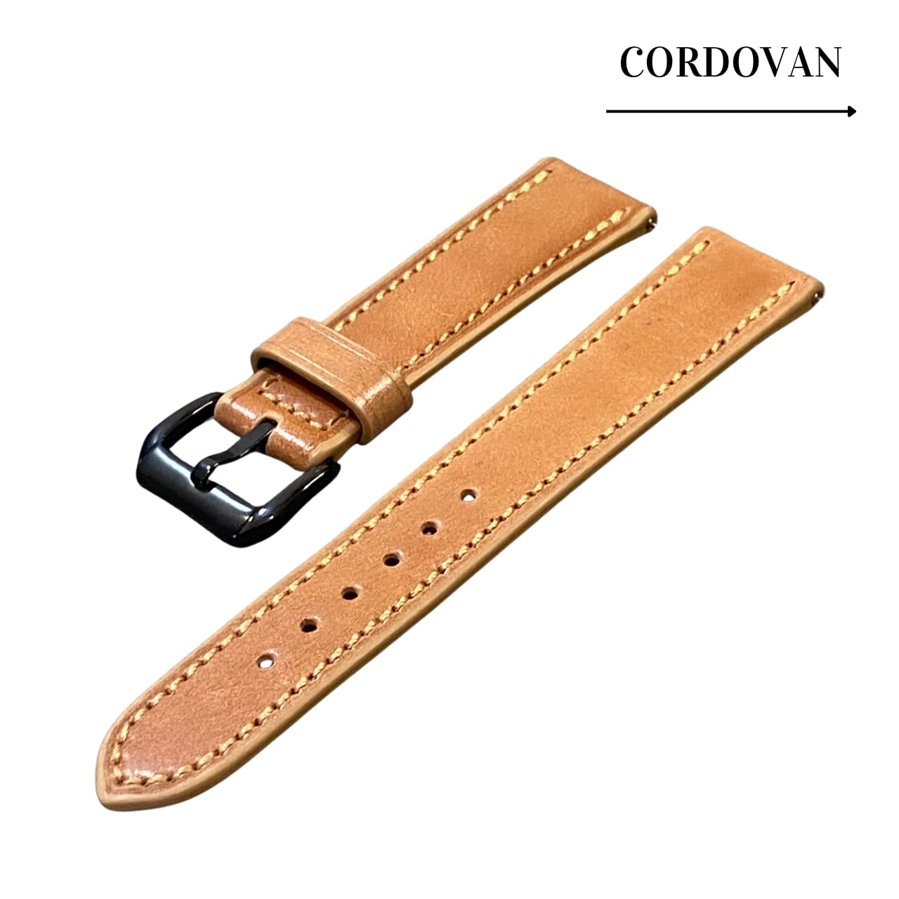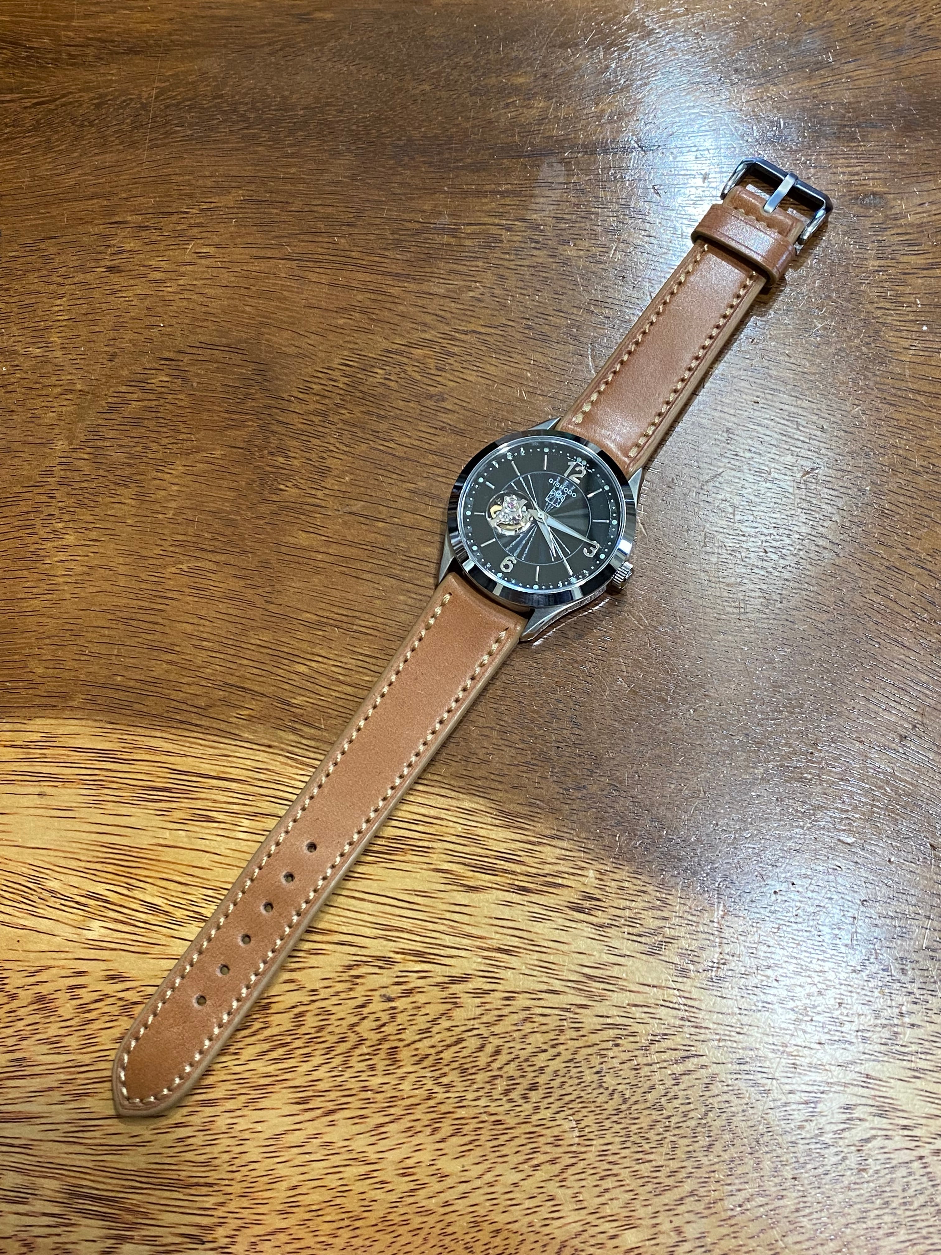新喜皮革製のオイル染めコードバンを使用した時計ストラップ(時計ベルト)です。