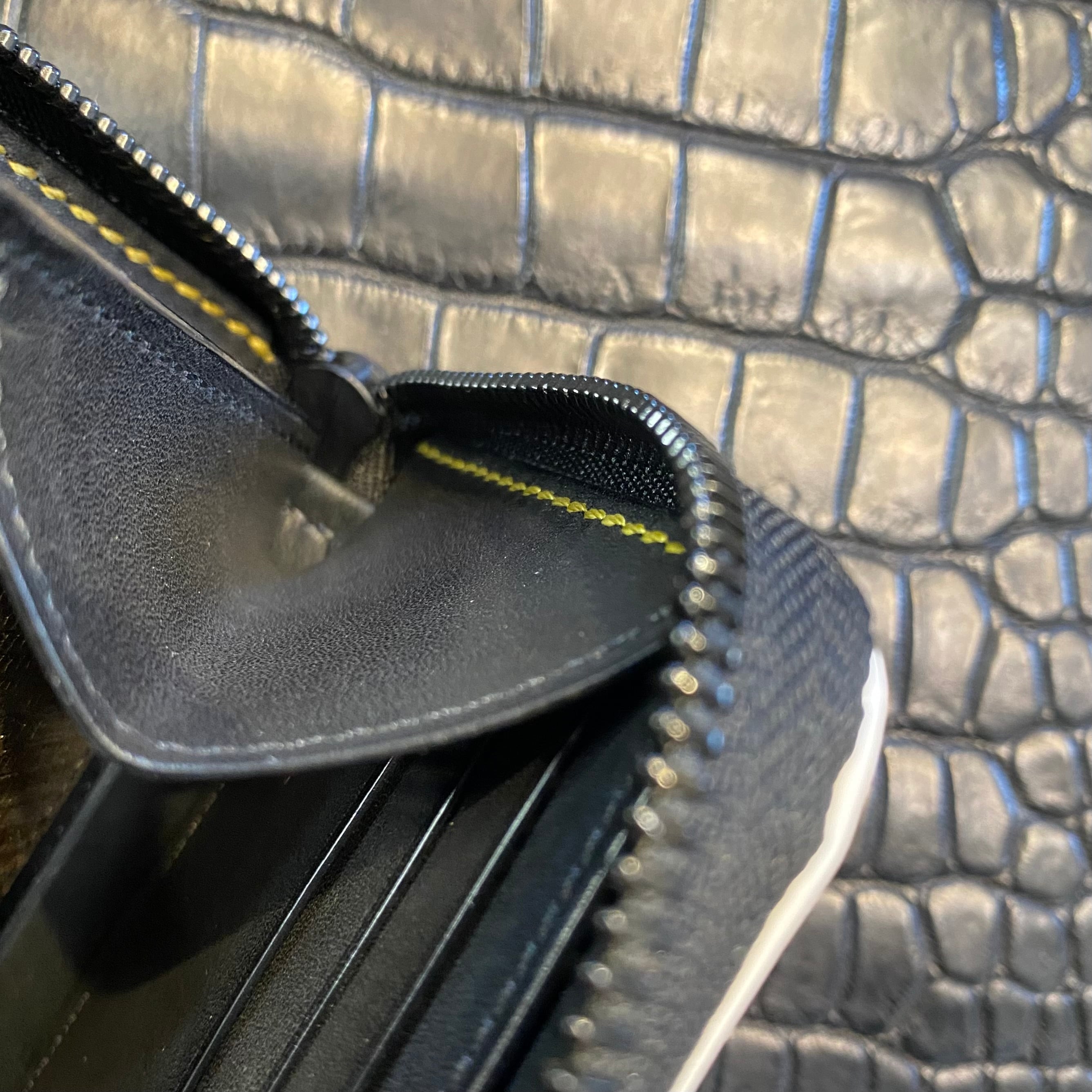 無二 クロコダイルラウンドファスナー長財布 ヒマラヤ・マット×牛革ブラック&金箔リザード使用 ニロティカス ナイルクロコダイル コバ磨き仕立て 金運アップ財布 ハンドメイド 外周は手縫い YKKエクセラファスナー使用 一点モノ 壊れない革財布 金運爆上がり